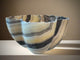 Generous in scale and sculptural in shape, this onyx bowl is a striking centerpiece. Carved by hand in Mexico, the piece features fluid curves and soft natural banding in pale tones of ivory, grey, and translucent blue. Its organic silhouette and substantial size create quiet impact—whether styled on a table, console, or displayed on its own. One of a kind.